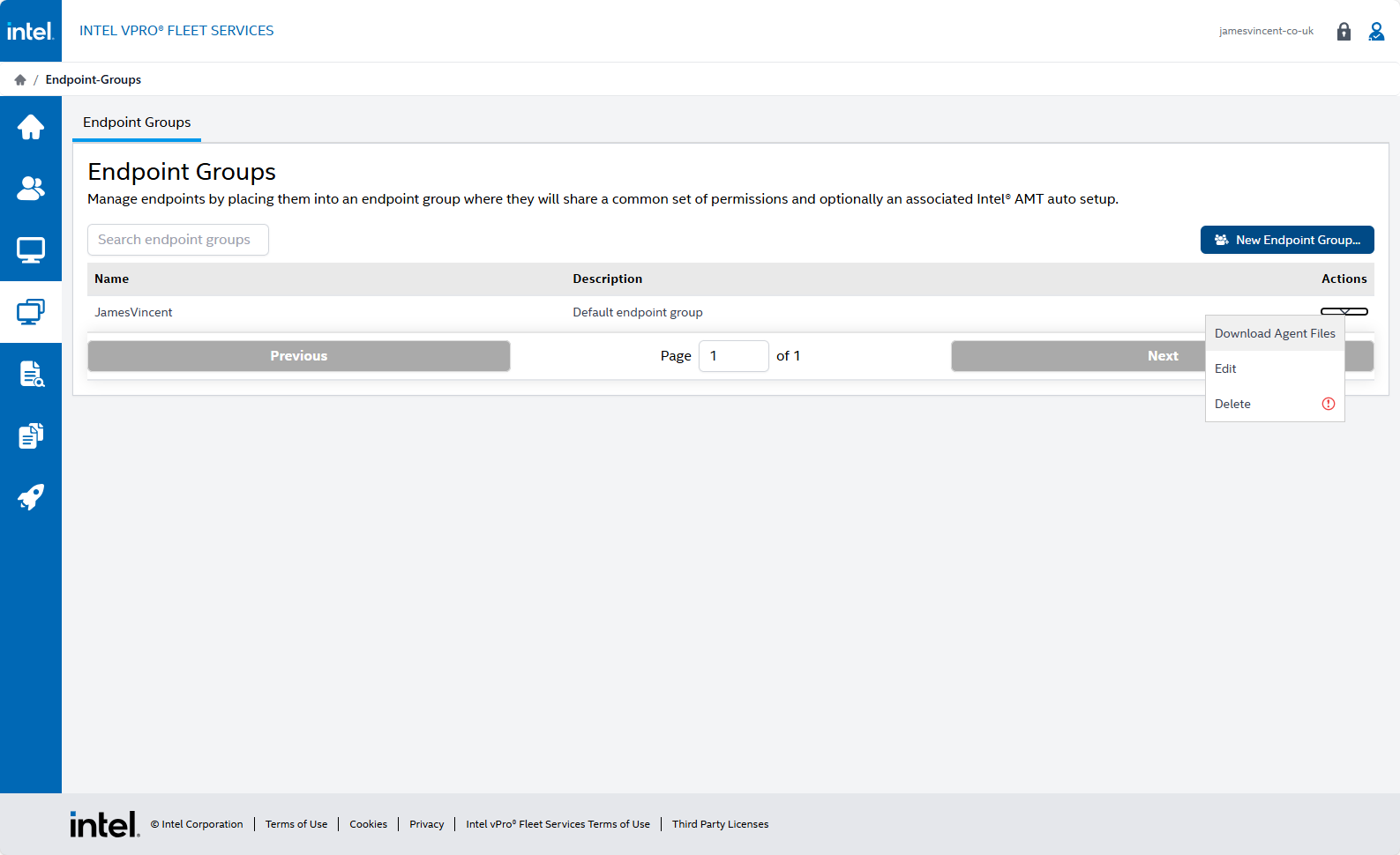 With your users created, go down to Endpoint Groups, out of the box, you will have a Default group. This can be renamed by selecting Edit. Whilst not very clear (at this moment in time), click the little arrow under the Actions heading and select Download Agent Files.