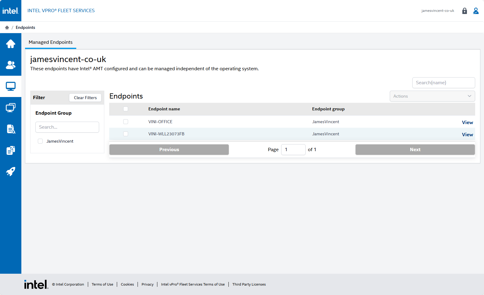 Shortly after the Agent was assigned and deployed, my devices started to appear within the Intel vPro® Fleet Services console.