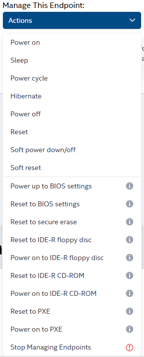 On the Endpoint page, you’re given the system status, a drop down to manage the Endpoint, and a tab called “Hardware Remote Desktop”.