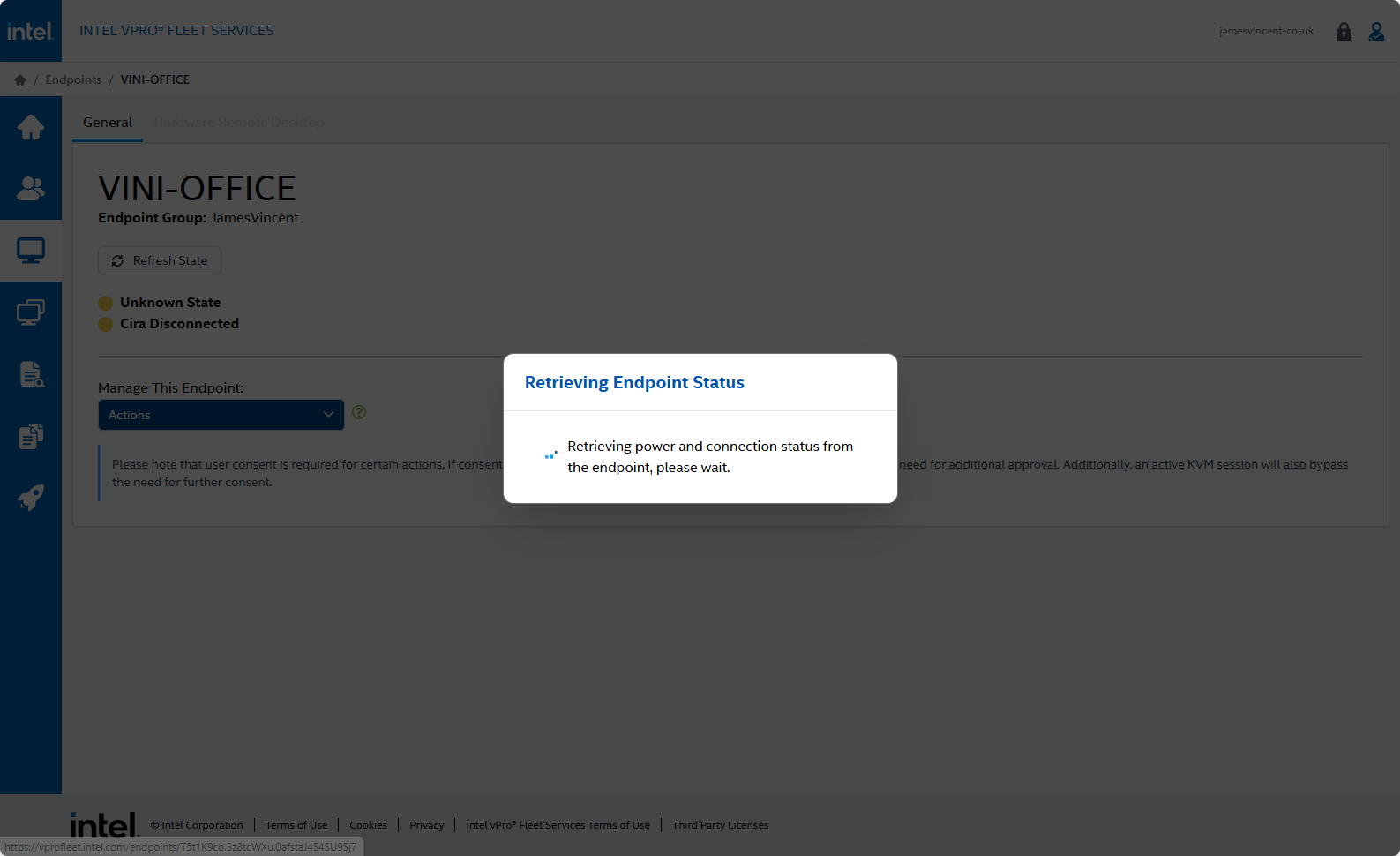 Right now, Intel vPro® Fleet Services is in early access/preview mode. However, the process described within is unlikely to change, and… the good news is, it’s really simple. Infact, in production, the process is likely even simpler as it just relies on having your EntraID email address registered in the Intel vPro® Fleet Services console.