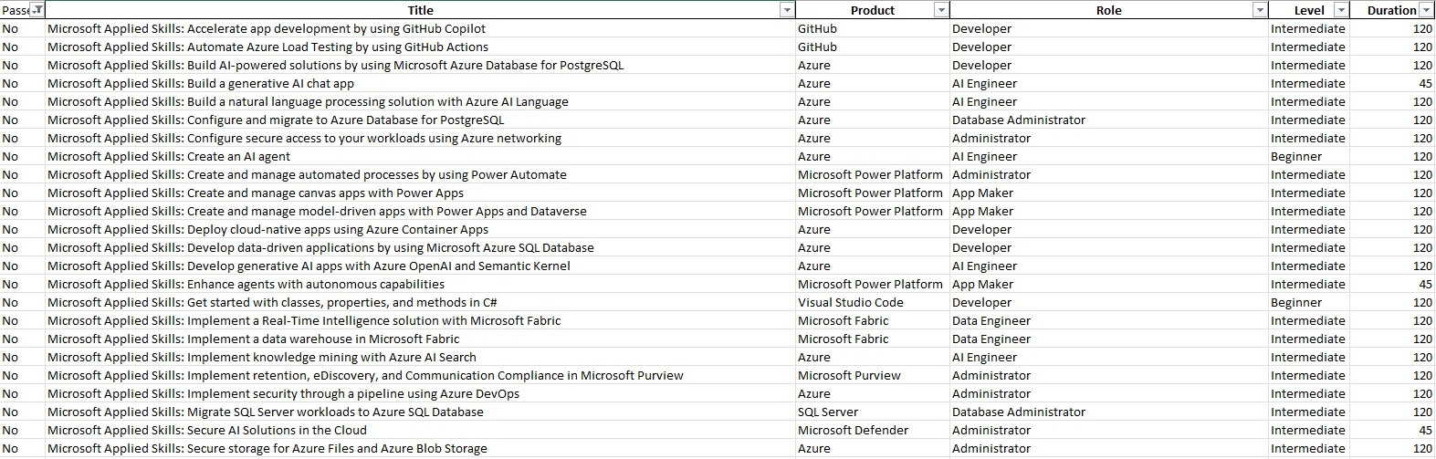 Applied Skills credentials are earned by completing interactive tasks that align to real work in a lab-based assessment. They’re flexible and can be earned at your pace, and on your schedule. Whether you’re trying something new or building toward certification, they help you fill skill gaps and stay on track in your learning journey.